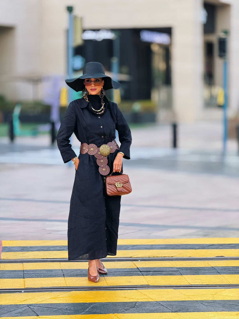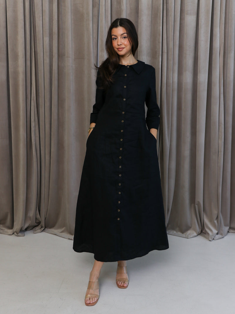 Cypress Linen Shirt Dress-Black