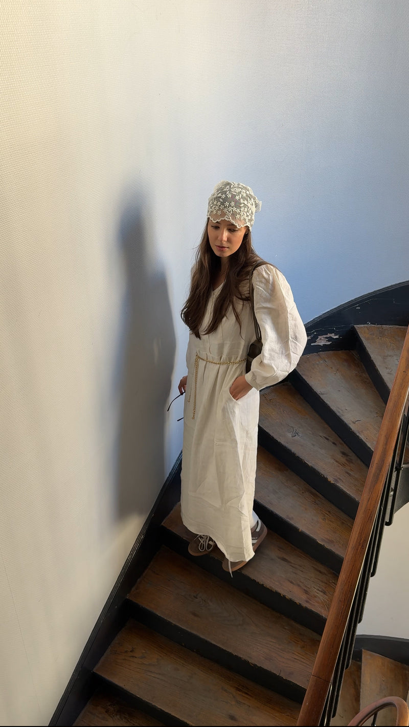 Sahara Cream White Linen Maxi Dress
