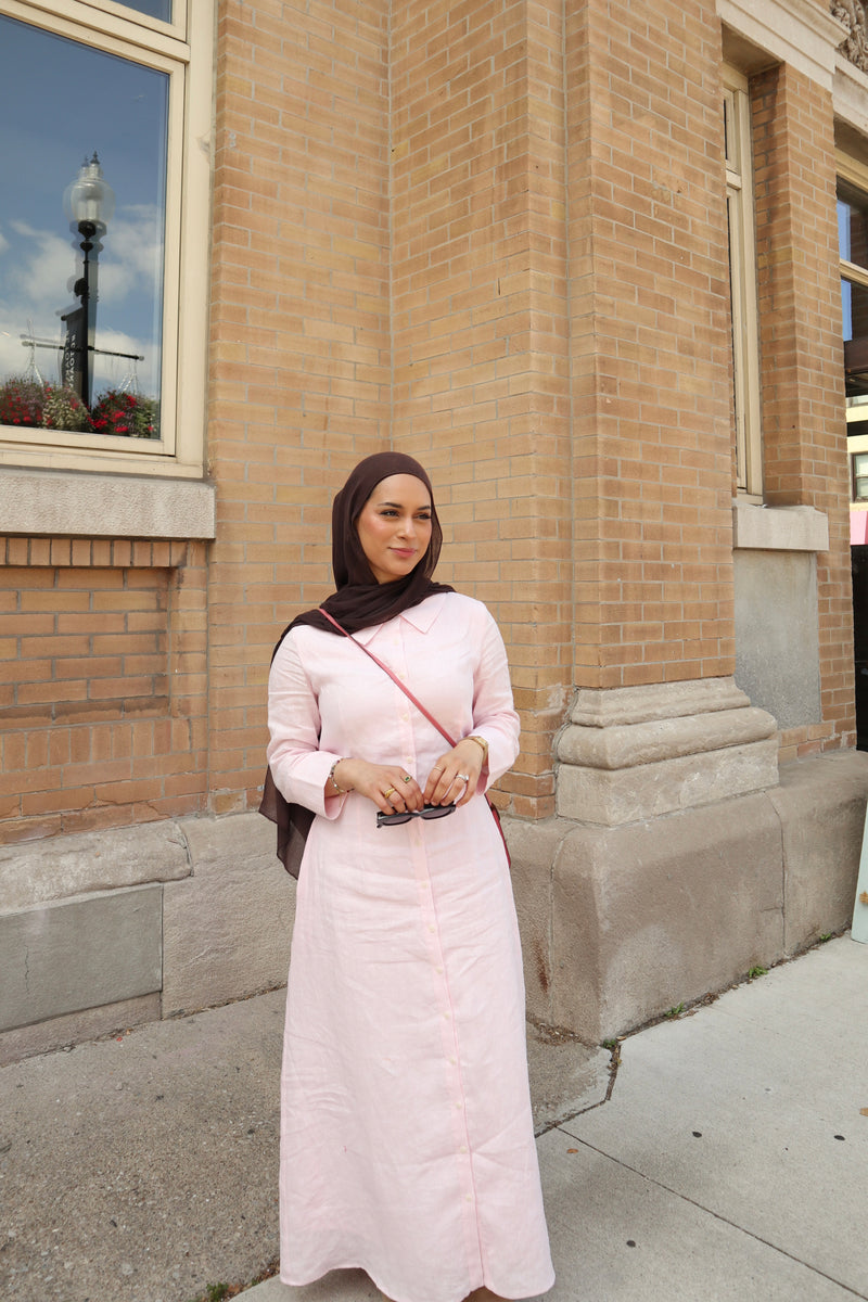 Cypress Linen Shirt Dress-Soft Pink