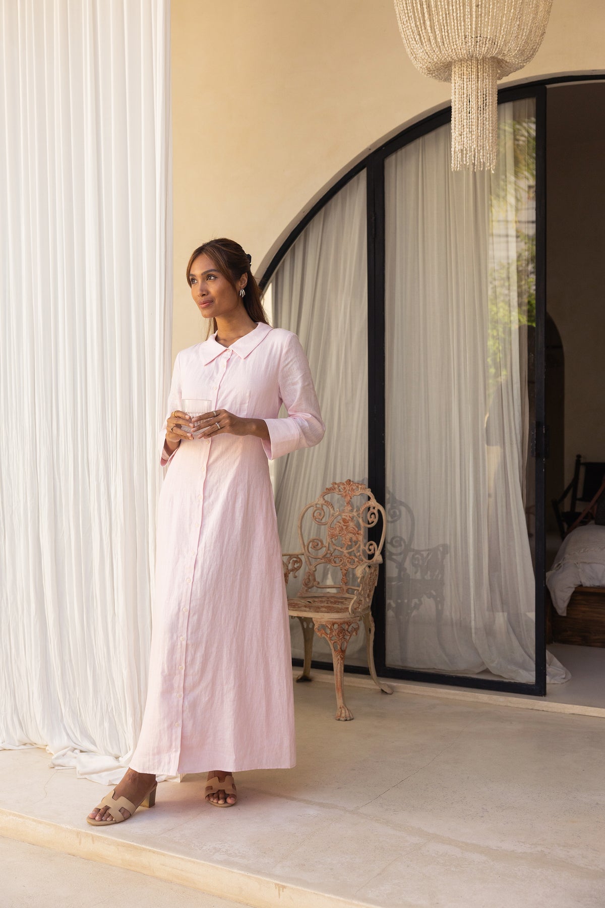 Our 100% Linen shirt dress captures the essence of resort wear, combining luxury with relaxed vacation vibes. Crafted from premium linen, this dress offers a breezy, comfortable fit that's perfect for those laid-back days by the beach or exploring a sun-drenched getaway.