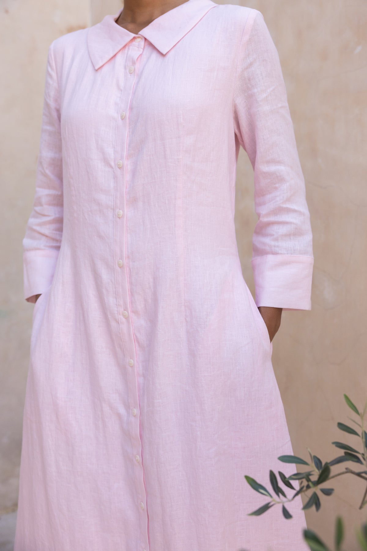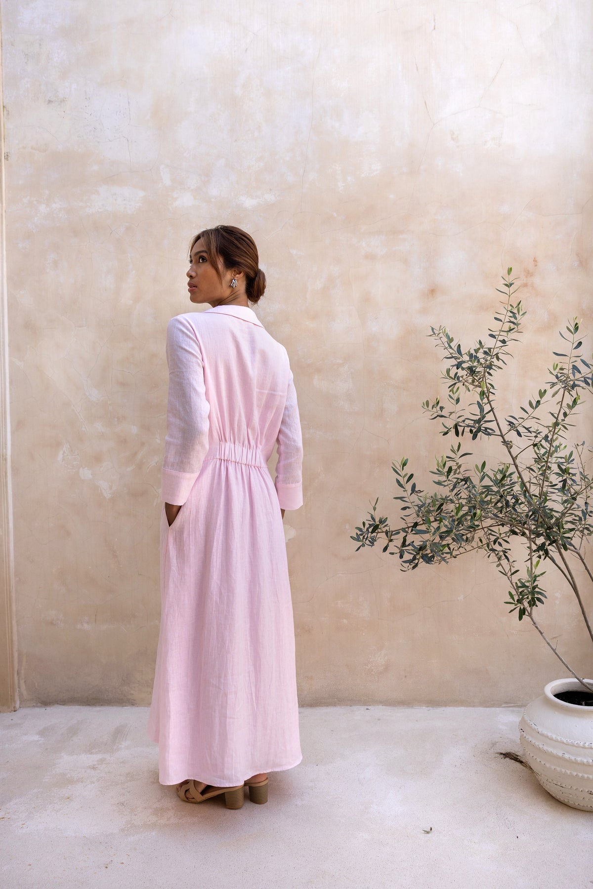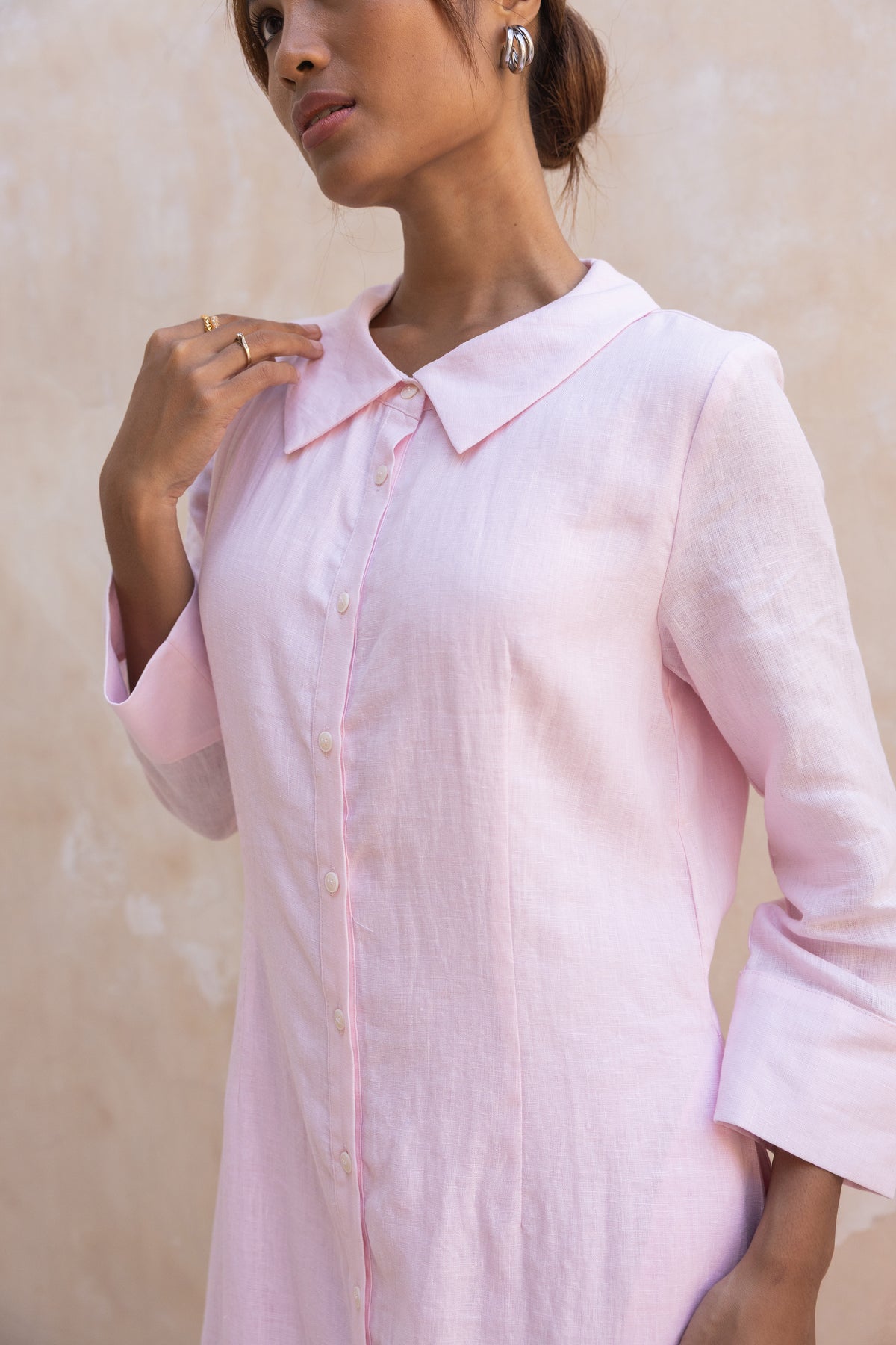 Cypress Linen Shirt Dress-Soft Pink
