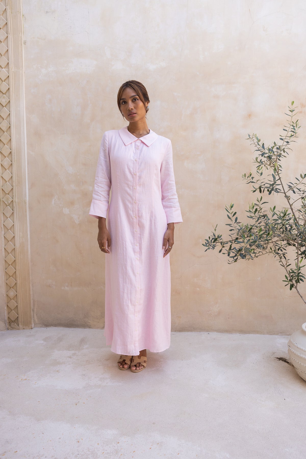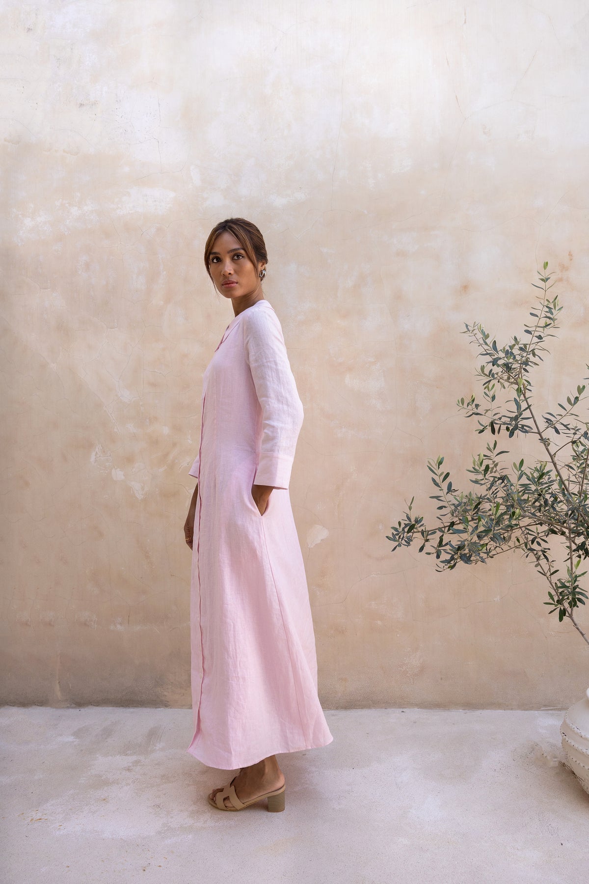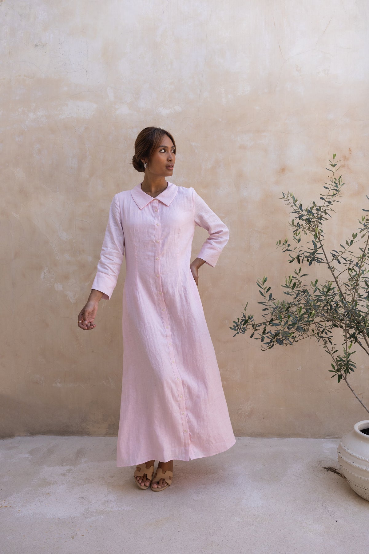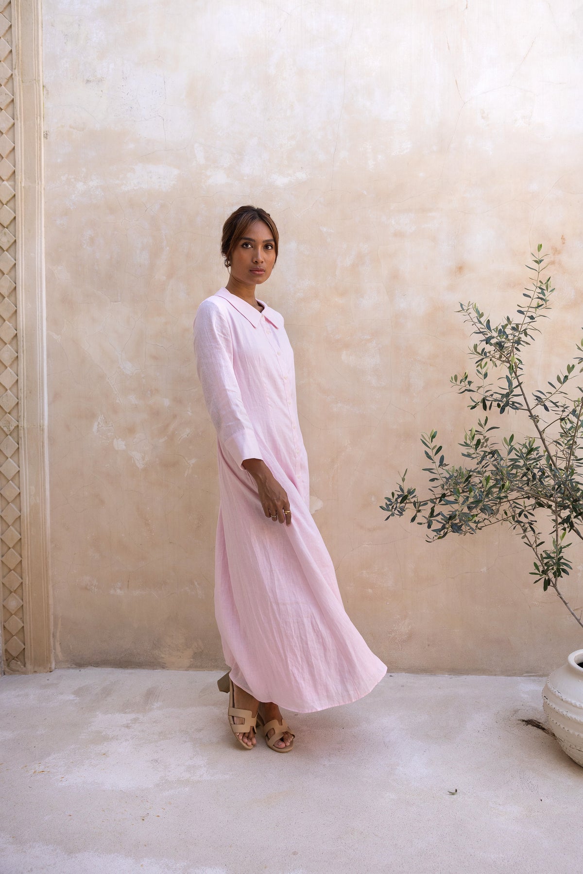 Cypress Linen Shirt Dress-Soft Pink